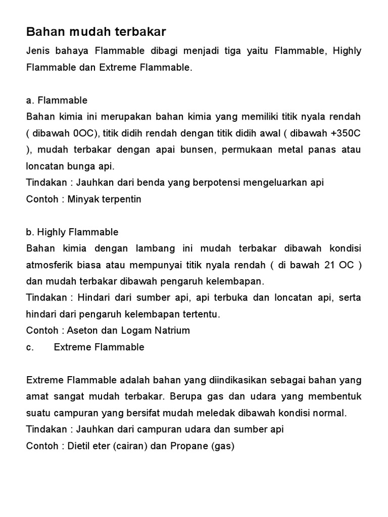 Untuk mengetahui data flash point dari suatu bahan kimia anda bisa menemukannya pada MSDS atau SDS bahan kimia mudah terbakar tersebut. Reaksi 3 unsur api panas oksigen dan bahan mudah terbakar. Kecuali JohorKedah Kelantan Perlis Terengganu 14 Januari Selasa.